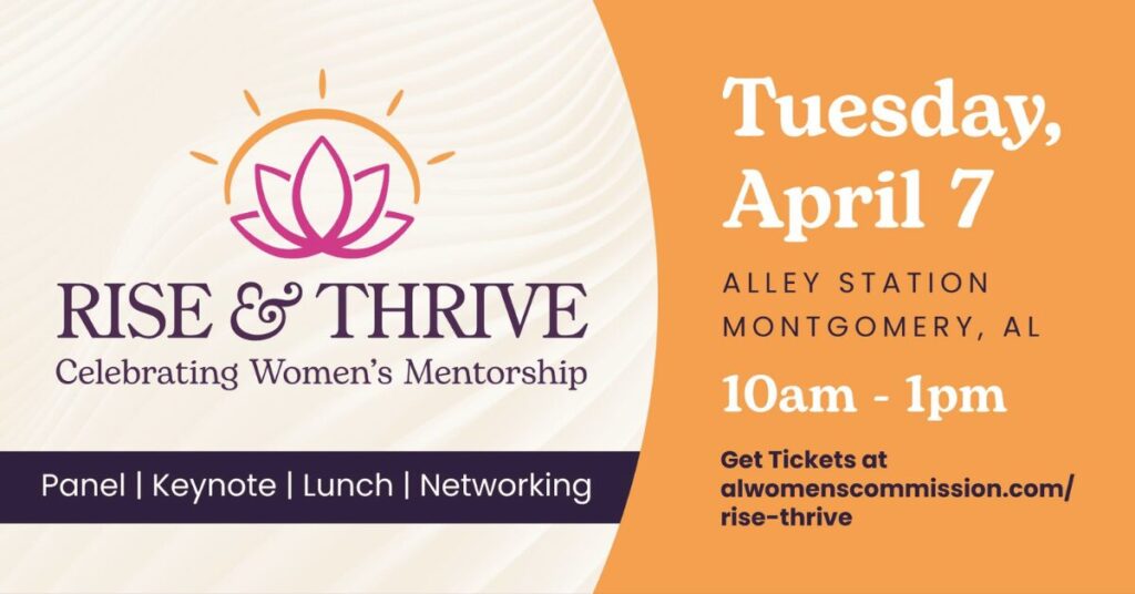 Montgomery, Alabama — The Alabama Women’s Commission will host Rise & Thrive: Celebrating Women’s Mentorship on Tuesday, April 7, 2026, at Alley Station in downtown Montgomery. The event will bring together women leaders, mentors, and professionals from across Alabama for a morning focused on leadership, mentorship, and connection.